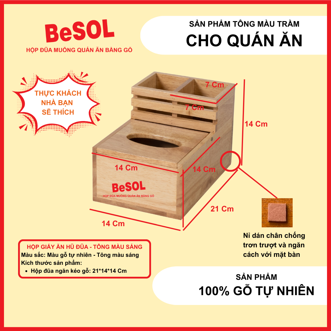 Hộp đựng giấy ăn đũa thìa (muỗng) bằng gỗ BeSOL – Giải pháp tiết kiệm để nâng cao trải nghiệm cho thực khách.