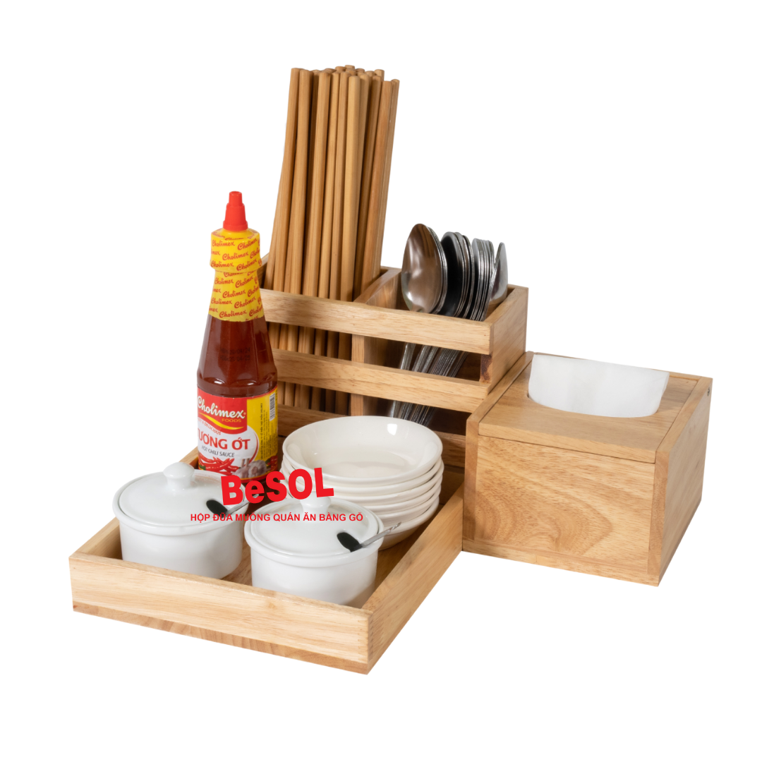 Với chất liệu gỗ tự nhiên, thiết kế tiện dụng, màu sắc sang trọng và độ bền vượt trội, khay đựng gia vị BeSOL cùng hộp đựng đũa thìa bằng gỗ BeSOL chắc chắn là lựa chọn số 1 cho mọi quán ăn muốn nâng tầm không gian phục vụ.